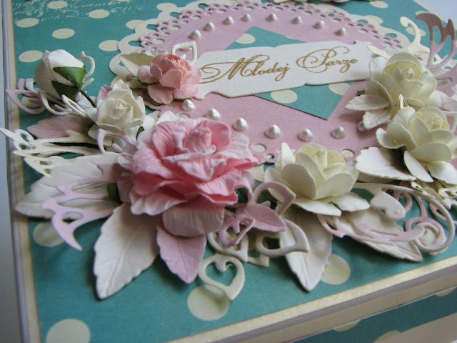 Komplecik ślubny zrobiłam z przepięknego papieru "Strawberry Kisses Collection"